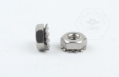 • 產(chǎn)品描述:K帽螺母是五金緊固配件螺母中的一種,又稱K形螺母、花齒螺母,它是將六角螺母的一面成型一個很薄的圓筒套管狀,再利用沖壓的壓鉚工藝將薄套管端壓入一個可活動的花齒片(花齒一般為錳鋼材質(zhì),經(jīng)過調(diào)質(zhì)熱處理),在鎖緊的過程中利用花齒的彈性和花齒的防滑齒達到鎖緊和防松的目的。