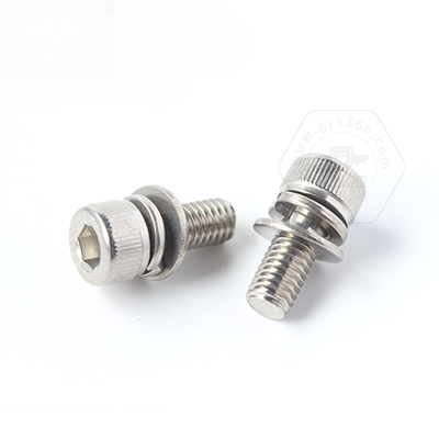 • 產(chǎn)品描述:DIN912 內(nèi)六角圓柱頭滾花帶平彈墊組合螺釘,是組合螺釘?shù)囊环N,又稱為內(nèi)六角圓柱頭組合件、內(nèi)六角杯頭連接副、內(nèi)六角杯頭三組合螺絲、圓柱頭自帶平彈墊螺釘。DIN912 內(nèi)六角圓柱頭滾花帶平彈墊組合螺釘,由內(nèi)六角圓柱頭螺釘、平墊圈和彈墊先組合后,再搓絲,形成一個組合件,組合好后墊圈能自由轉動且不會脫落。組合件使用方便,不用再另配平墊、彈墊,大大提高生產(chǎn)組裝效率。DIN912 內(nèi)六角圓柱頭滾花帶平彈墊